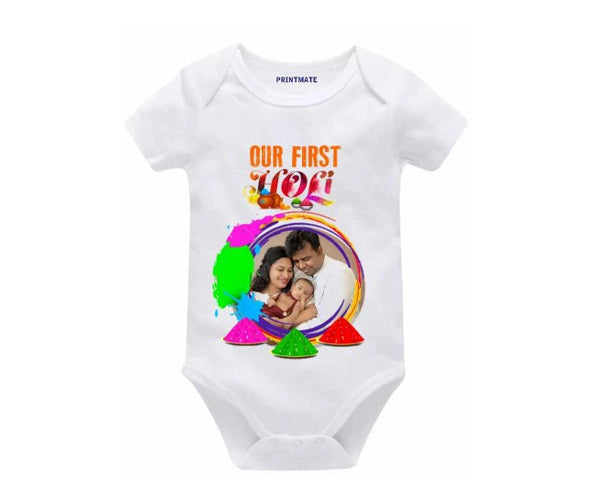 Brighten your little one’s Holi celebration with our Baby Holi T-Shirt! Designed to capture the festival's joyful spirit, this adorable tee ensures your baby looks festive and feels comfortable.
