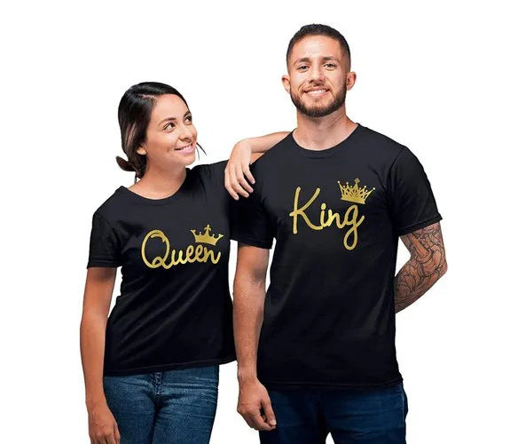 1. Classic Black Elegance: Our Black Couple T-Shirts feature a timeless black base, making them versatile for any occasion. The classic color ensures a sleek and stylish look that pairs effortlessly with any outfit.