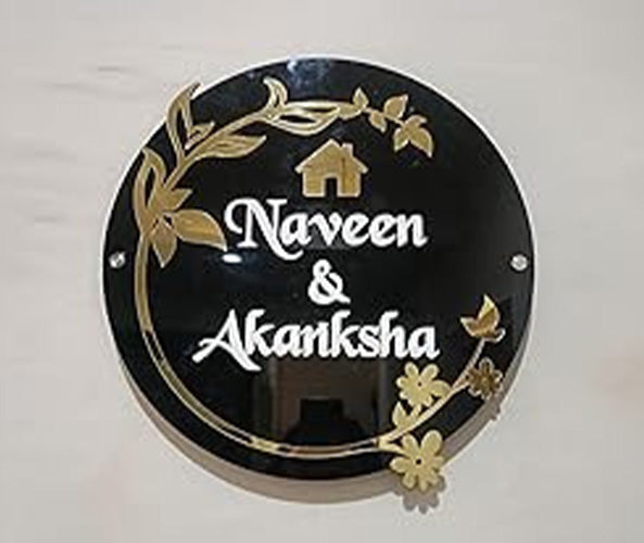 Black, White, and Golden Acrylic Home Plate: Add a touch of luxury to your entrance with the Black, White, and Golden Acrylic Home Plate. This elegant nameplate features a striking combination of bold black, crisp white, and opulent golden accents, creating a modern and sophisticated look. Perfect for showcasing your family name or address, it enhances any home with timeless style.