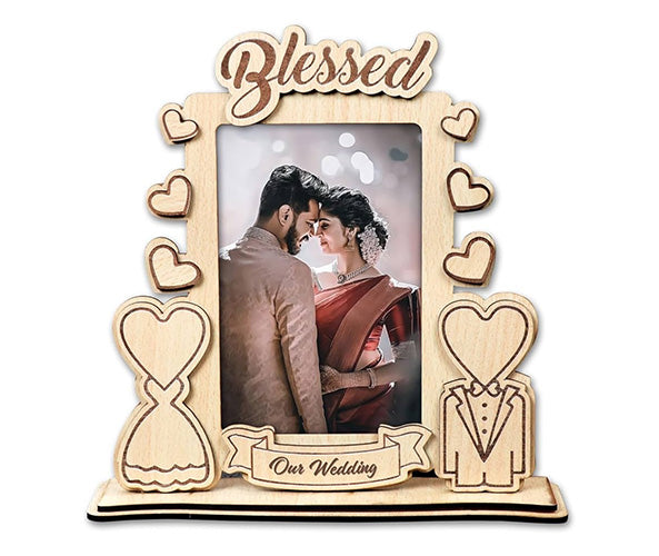 Blessed Wooden Couple Frame: Celebrate your love with the Blessed Wooden Couple Frame. Crafted from premium wood, this beautifully designed frame features the word "Blessed" elegantly engraved, making it a perfect way to showcase your most cherished couple photos. Ideal for anniversaries or weddings, it adds a touch of warmth and love to any space.