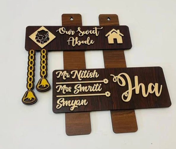 Brown Black Wooden Home Plate: Elevate your home’s entrance with the Brown Black Wooden Home Plate. This sophisticated nameplate combines rich brown and black tones, creating a striking contrast that enhances any exterior. Crafted from high-quality wood, it offers personalized engraving, adding a stylish and welcoming touch to your home.