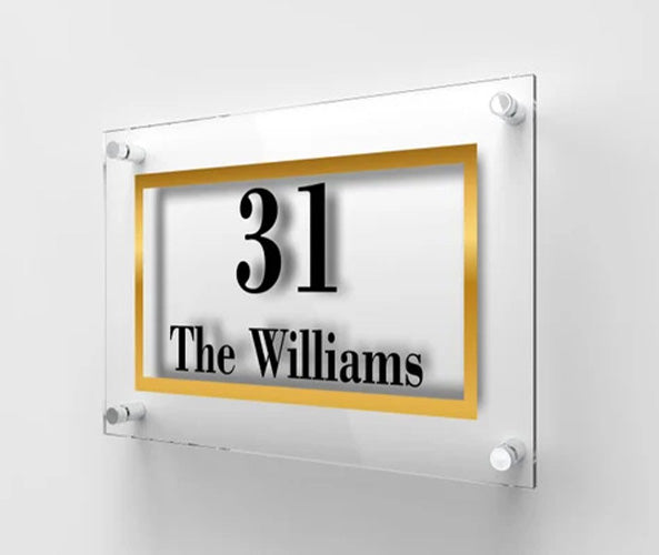 Clear Acrylic Home Plate: Add a modern and sleek touch to your entrance with the Clear Acrylic Home Plate. This minimalist nameplate offers a transparent design that blends seamlessly with any home decor. Perfect for displaying your family name or address, it provides a subtle yet elegant statement at your doorstep.