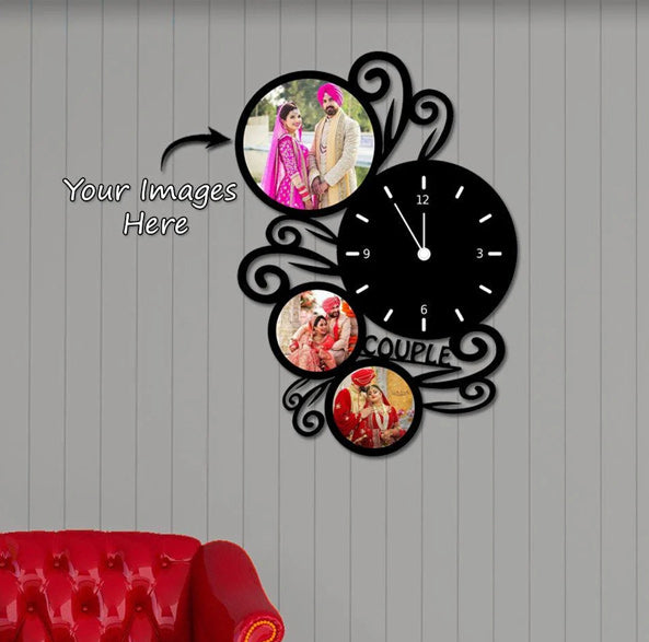 Celebrate your love story with this beautiful couple-themed wooden photo wall clock. Featuring spaces for your favorite couple photos, it adds a romantic and personalized touch to any room. Perfect for bedrooms or living rooms, it’s a stylish way to keep time and cherish memories.