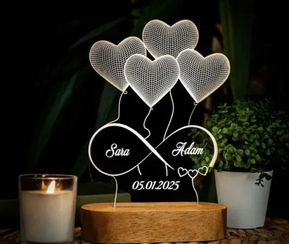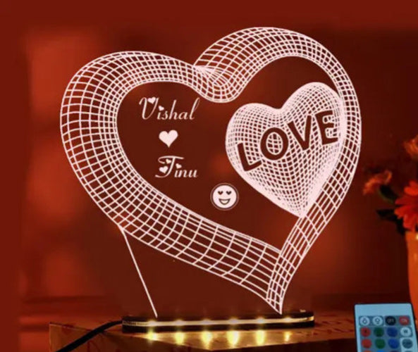 Celebrate your love with our Customized 3D Heart Acrylic LED Lamp! This stunning lamp features a 3D heart design and personalized touches that glow with warmth. Perfect for couples, it creates a romantic ambiance and makes an unforgettable gift. Illuminate your love story with this unique and heartfelt decor piece!