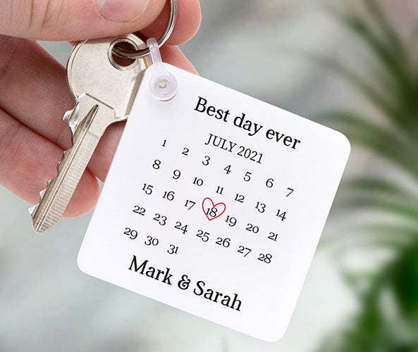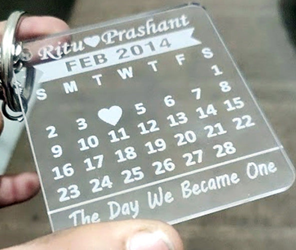 Customized Calendar Keychain: This personalized keychain features a mini calendar with a special date highlighted, making it a unique keepsake. Crafted from durable materials, it's a perfect gift to commemorate anniversaries, birthdays, or any important event. Carry your cherished memories wherever you go with this stylish and meaningful accessory.