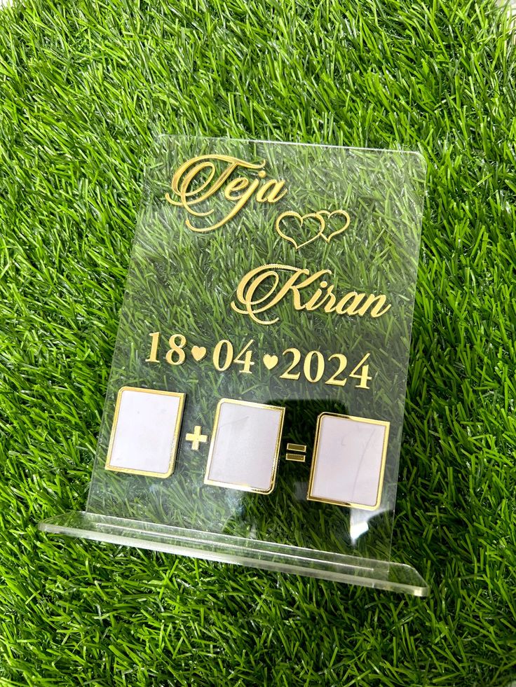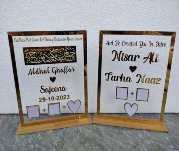 Customized Couple Thumb Impression Frame with Wooden Stand: Capture your love with this customized thumb impression frame. Featuring a wooden stand, it’s a personalized keepsake that beautifully displays the couple’s thumbprints.