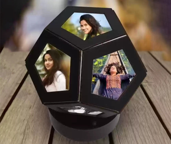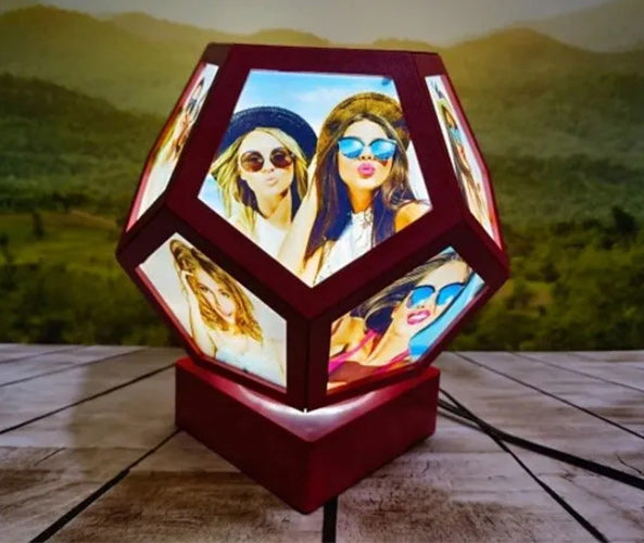 Customized Rotating Pentagon Lamp: Illuminate your space with the Customized Rotating Pentagon Lamp. Featuring a unique pentagon shape, this lamp can be personalized with your favorite photos, creating a dynamic and rotating display. Perfect for adding a personal touch to any room or as a thoughtful gift, it blends modern design with functionality. Ideal for living rooms, bedrooms, or offices, this lamp combines stylish decor with cherished memories, making it a standout piece that brightens and personalizes your space.