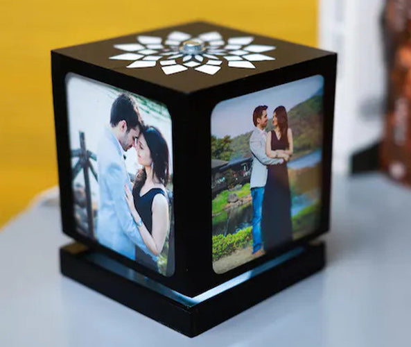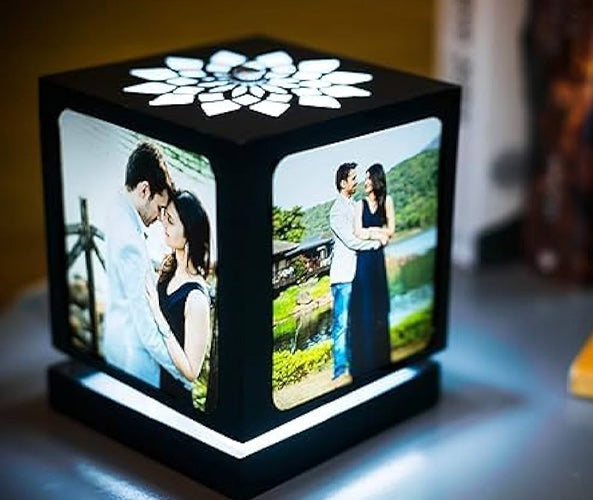 Customized Rotating Photo Lamp with 4 Photos: Illuminate your cherished memories with this Customized Rotating Photo Lamp. Featuring space for 4 photos, this unique lamp gently rotates to showcase your favorite moments in a captivating and dynamic display. Perfect for special occasions like birthdays, anniversaries, or as a personalized gift, it adds a warm and personal touch to any room. The sleek and modern design complements any decor, making it an elegant addition to your living room, bedroom, or office. This rotating photo lamp not only lights up your space but also brightens your heart with its beautiful display of treasured memories.