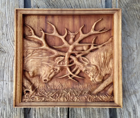Deer Duel Wood Carving Rustic Wall Decor for Nature Enthusiasts