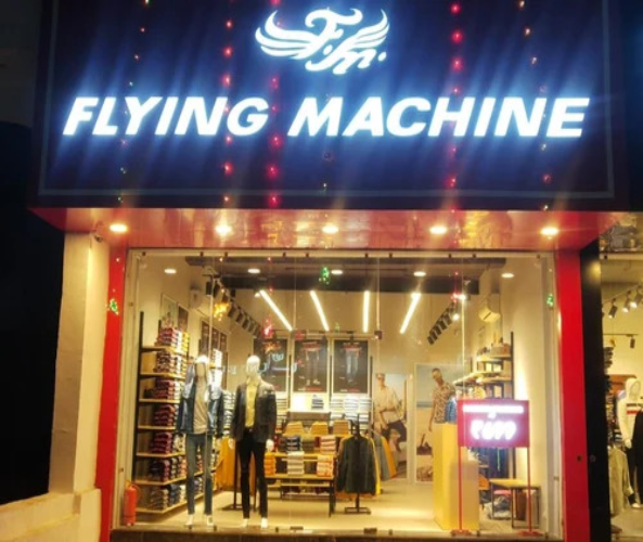 Flying Machine LED Sign Board, On Shop: Illuminate your Flying Machine store with this stylish LED signboard. Crafted for clarity and durability, it ensures visibility at all hours, boosting your shop's branding with its sleek design.