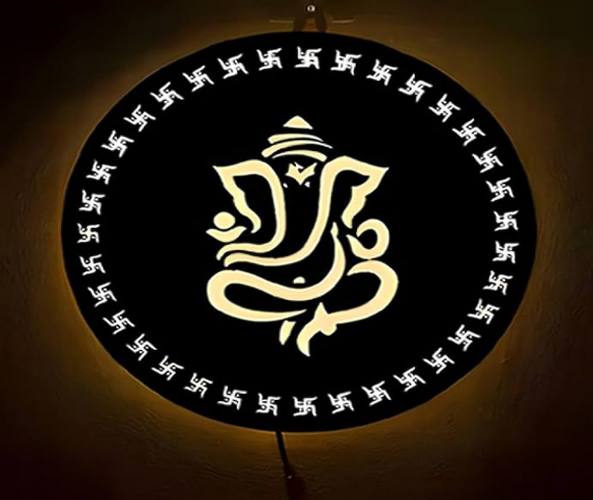 Ganesh Ji Neon LED Wall Decor, MDF Wood Backlit Wall Art