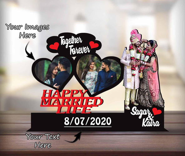 Celebrate your union with our Happy Married Life Wooden Table Top! This beautifully crafted piece features a heartfelt message on a rustic wooden base, adding warmth and charm to any space. Perfect for newlyweds, it’s an ideal gift to commemorate your love and wish a lifetime of happiness together!