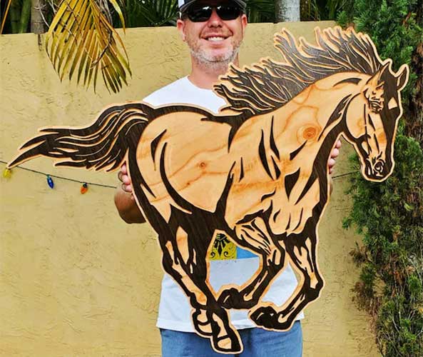 Horse Decor Wood Carving Wall Hanging Sign, Running Horse Design Painted, Stained, and Carved