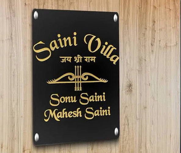 Jai Shree Syam Name Plate: Honor your home with the Jai Shree Syam Name Plate. Featuring a graceful design with the revered name "Jai Shree Syam," this nameplate blends traditional elements with modern style. Crafted from high-quality materials, it offers a spiritual and welcoming touch, adding a sense of devotion and elegance to your entrance.