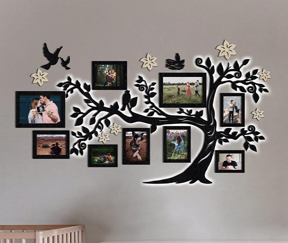 Led Family Tree With Photo Frames, Wall Light Decorations for Living Room, Bedroom: Light up your living room or bedroom with the LED Family Tree with Photo Frames. This illuminated frame is perfect for creating a warm and inviting atmosphere.