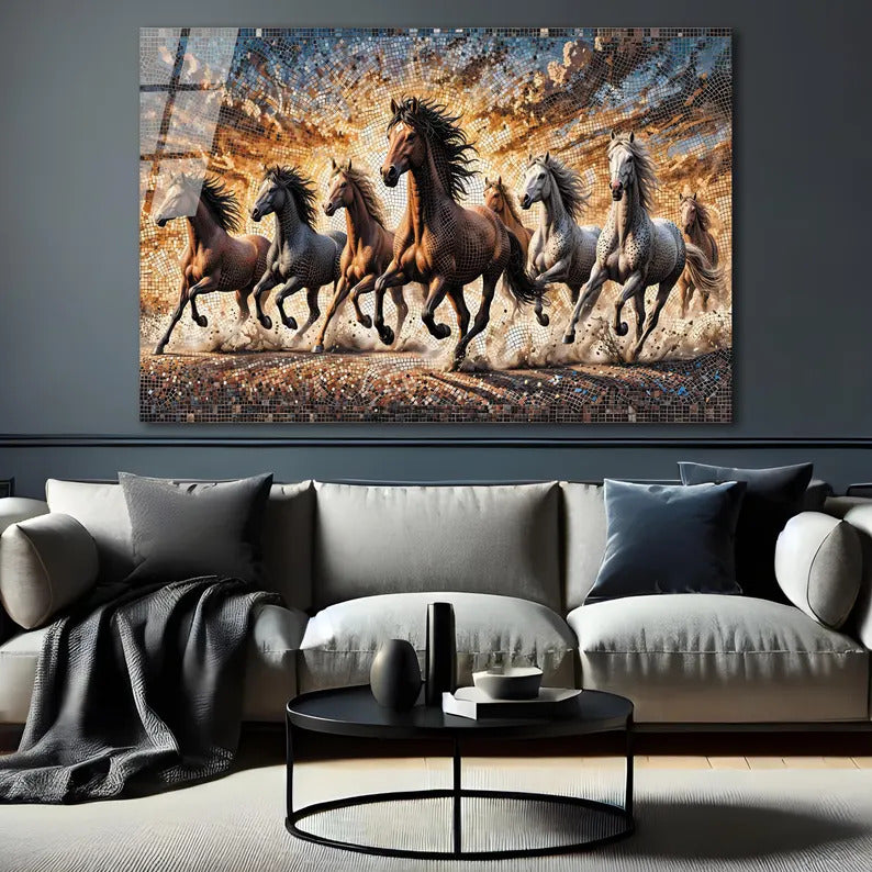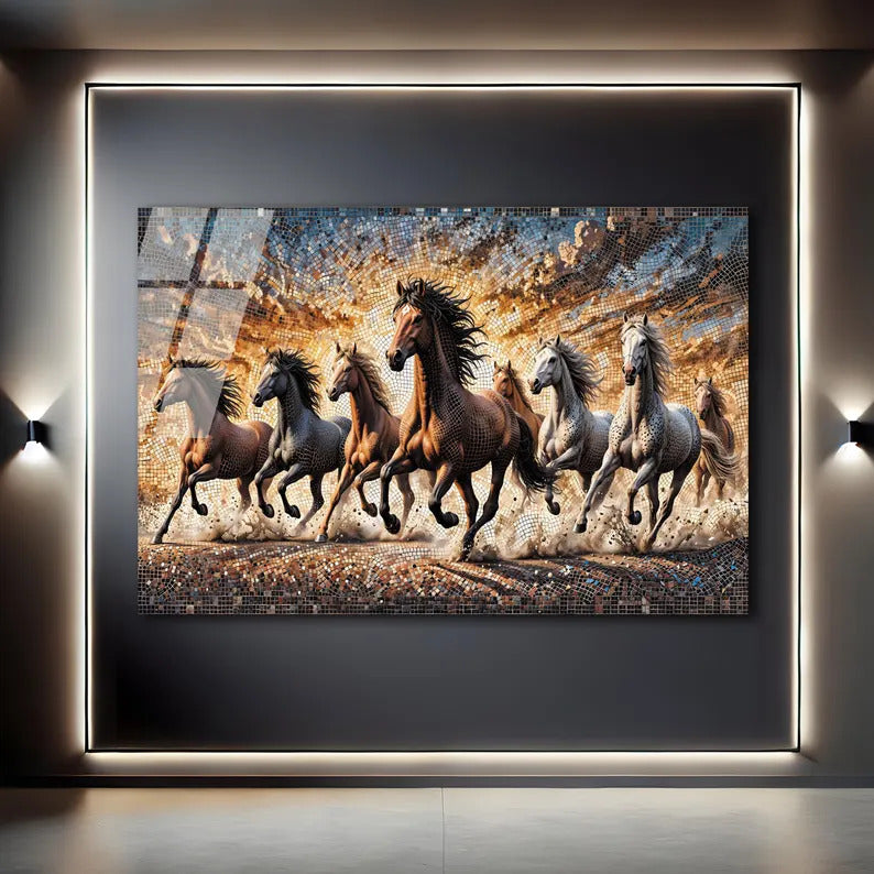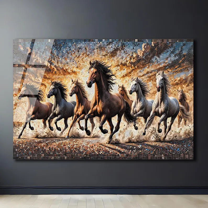 Lucky 7 Running Horses Glass Printing Wall Art - Tempered Glass Wall Art-Home Decoration-Interior Design Ideas-Perfect Gift For Your Lovers