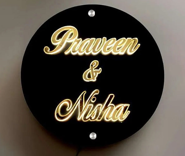 Name Plate - Round LED - Home Name Plate Design: Illuminate your home’s entrance with this elegant Round LED Name Plate. The circular design is complemented by integrated LED lighting, creating a warm and welcoming glow. This stylish name plate adds a touch of modern sophistication to any doorway, making it both functional and decorative.