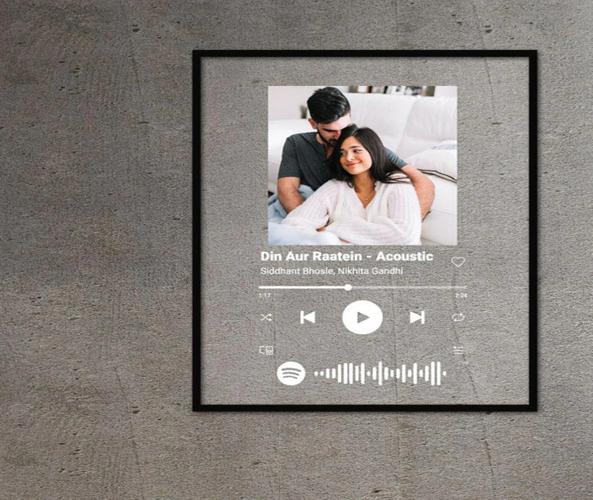Personalized Spotify Acrylic Music Plaque with Frame: A sleek and modern acrylic music plaque that displays your favorite song, complete with a scannable Spotify code. This plaque is framed for an elegant finish, making it a standout decor piece. You can customize it with a photo of your choice, the song title, artist name, and the Spotify code for a truly unique keepsake. Perfect as a gift for special occasions like anniversaries, birthdays, or to commemorate cherished memories, this personalized Spotify plaque beautifully merges music and moments into a stylish decor item.