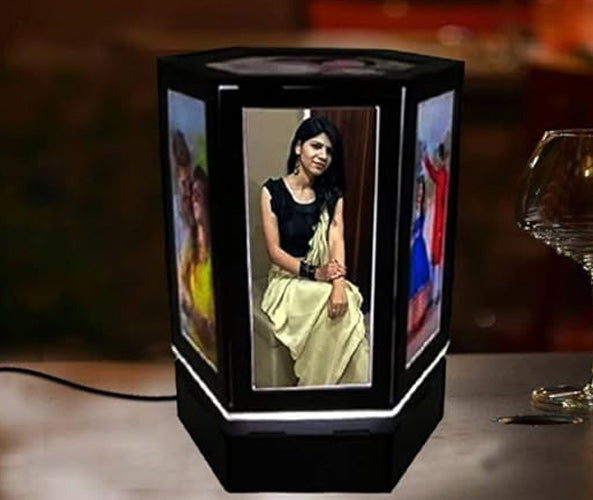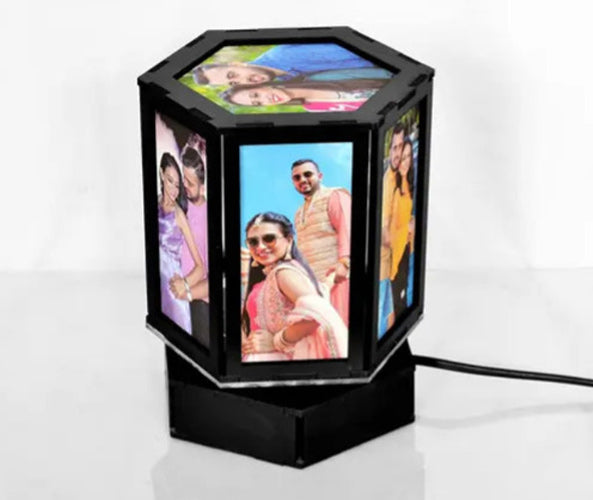 Personalized Hexagonal Wooden Rotating Lamp: Elevate your decor with the Personalized Hexagonal Wooden Rotating Lamp. Featuring a distinctive hexagonal shape, this lamp rotates to beautifully display your favorite photos or designs. Crafted from high-quality wood, it offers a warm, natural look while adding a touch of modern elegance. Ideal for showcasing cherished memories or as a unique gift, the rotating feature ensures a dynamic presentation from every angle. Personalize it with names, dates, or special messages to create a meaningful and stylish addition to any room.