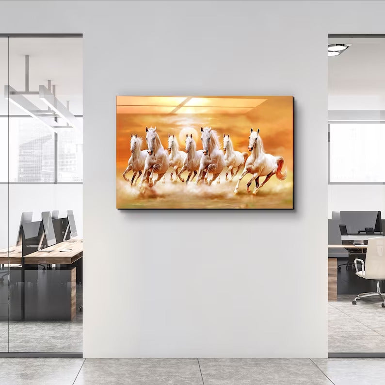 Lucky 7 Running Horses Glass Printing Wall Art - Tempered Glass Wall Art-Home Decoration-Interior Design Ideas-Perfect Gift For Your Lovers