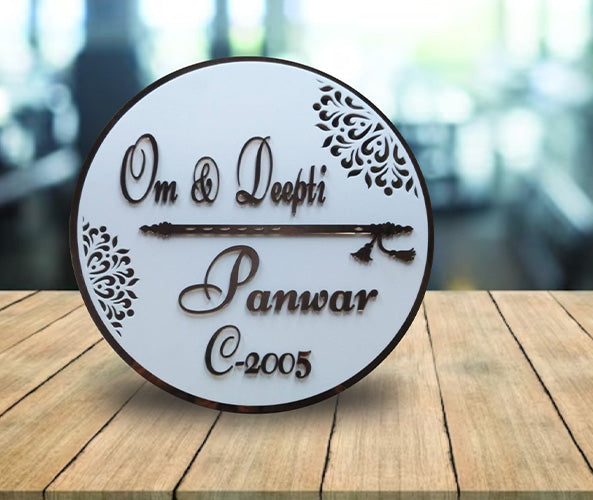 Round Nameplate with Corner Design: Add a unique touch to your home with the Round Nameplate featuring a stylish corner design. This elegant nameplate combines a sleek circular shape with intricate corner accents, creating a harmonious blend of modern and classic aesthetics. Perfect for showcasing your family name or address, it brings a personalized and artistic flair to your entrance.