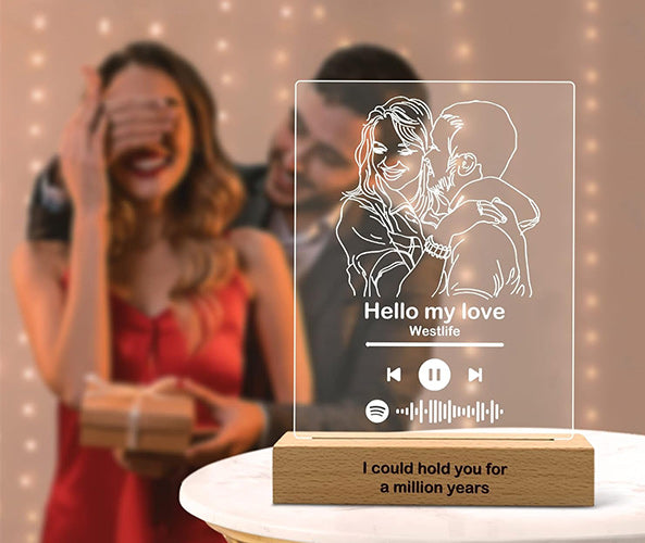 Spotify Plaque with LED Stand: Showcase your favorite song with this stylish Spotify plaque, complete with an LED stand. The acrylic plaque features a customizable Spotify code, song title, and album art, allowing you to play the song instantly by scanning the code with your Spotify app. The LED stand illuminates the plaque with soft, adjustable lighting, making it a perfect decorative piece for music enthusiasts. Ideal as a unique gift or personal keepsake, it adds a modern and personal touch to any space.