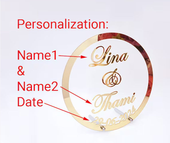 Wedding Couple Name Date Acrylic: Commemorate your wedding day with this sophisticated acrylic decor piece featuring the couple's names and wedding date. The sleek and modern design, available in various colors and finishes, adds a contemporary touch to your wedding or anniversary celebration. This customizable piece can be displayed on tables, mantels, or as part of a photo backdrop, creating a lasting memory of your special day. Ideal as a gift or a personal keepsake, it beautifully showcases the love and commitment of the newlyweds.