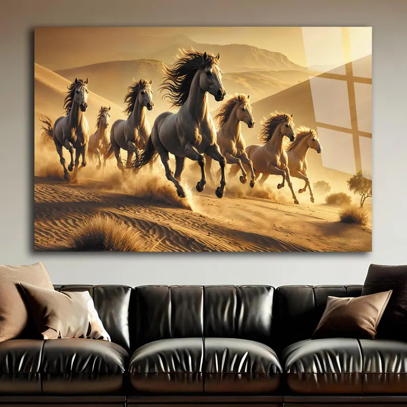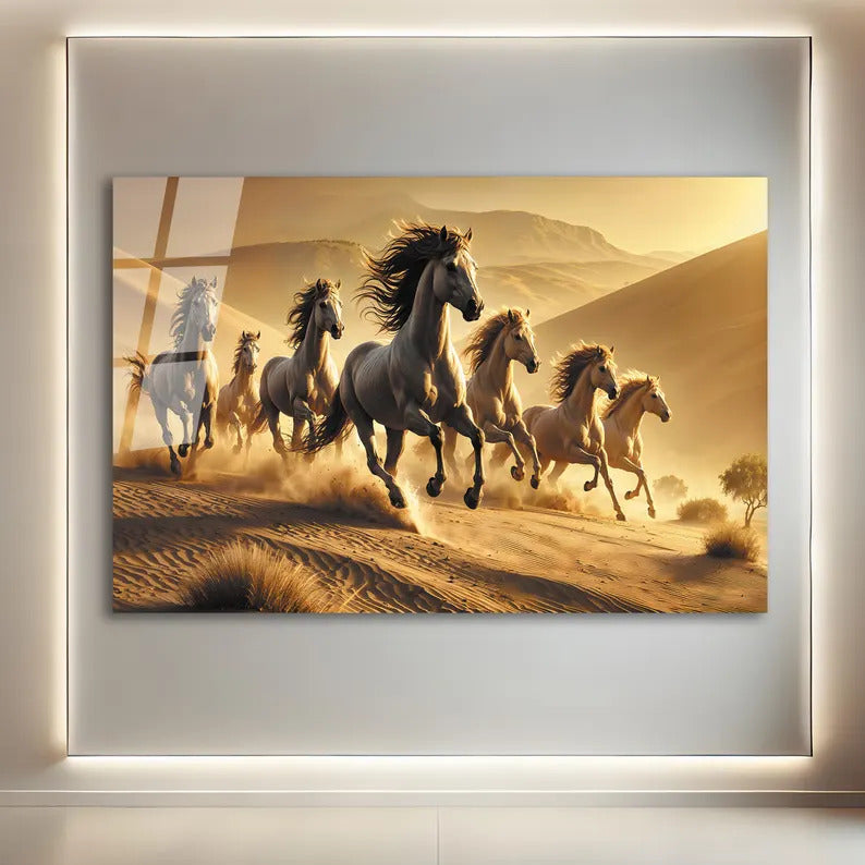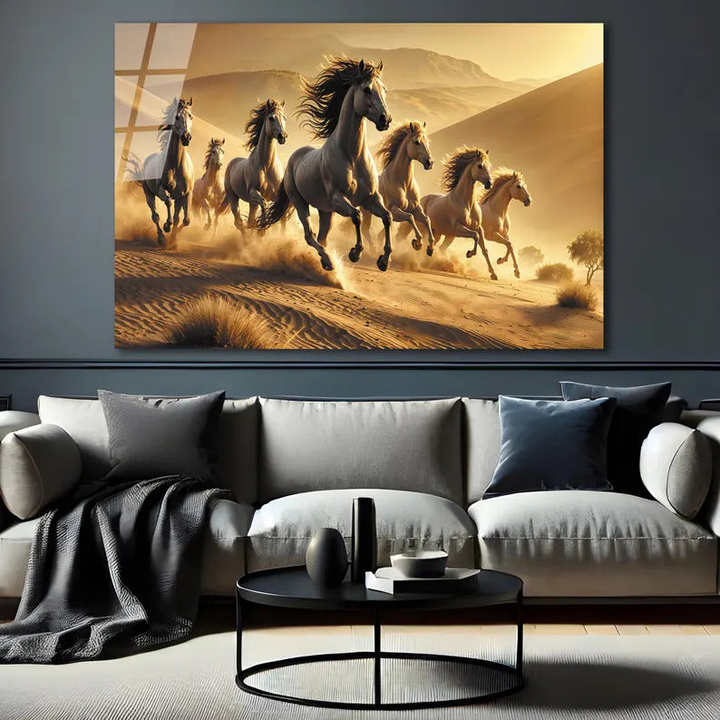 Lucky 7 Running Horses Glass Printing Wall Art - Tempered Glass Wall Art-Home Decoration-Interior Design Ideas-Perfect Gift For Your Lovers